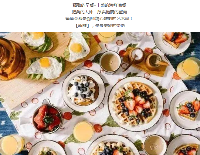 自助早餐:成人98元/位,儿童1.1-1.4米68元/位,1.1米以下免费