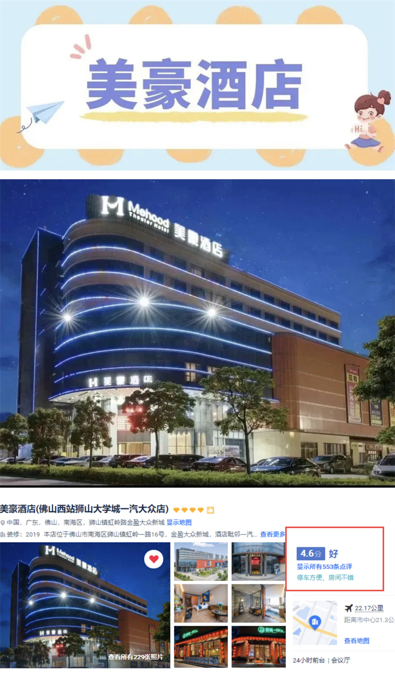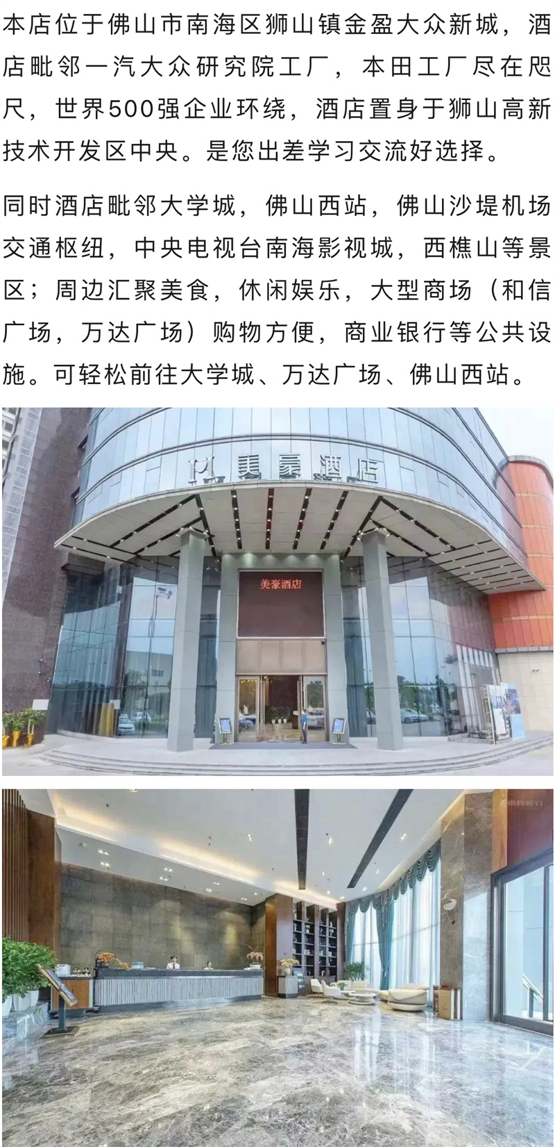 美豪酒店(佛山西站狮山大学城一汽大众店)广东省佛山市南海区狮山镇虹岭路金盈大众新城0757-86220333